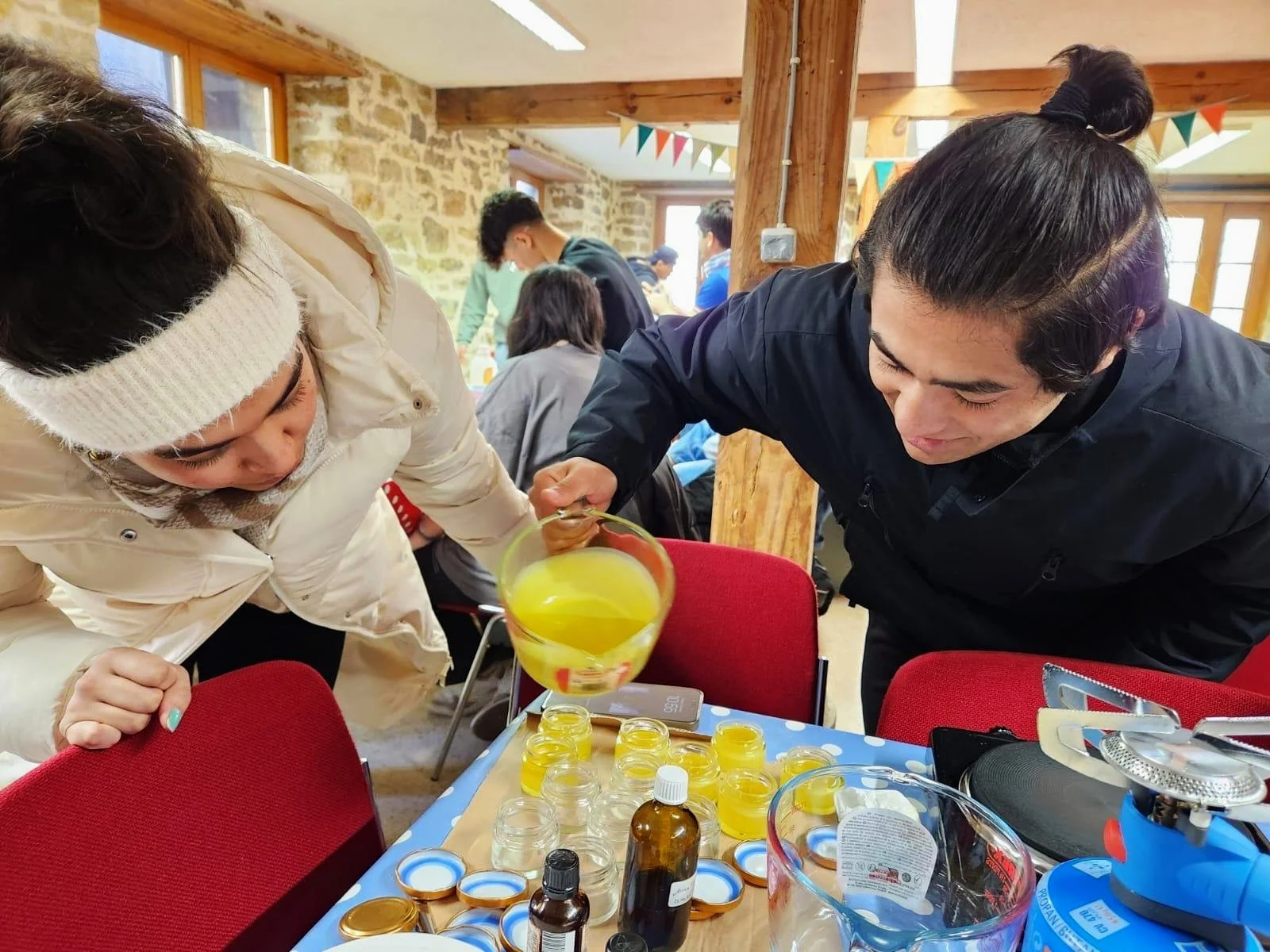 Aus Wurzeln und Kräutern aus dem Garten oder wild gesammelt, stellen die Jugendlichen Nasenbalsam, Beinwellsalbe, Ringelblumensalbe, Sticks gegen Insektenstiche etc. her. Exaktes Arbeiten, das Lesen und Verstehen eines Rezepts und Durchhaltewille sowie Planung sind erforderlich damit ein solches Produkt vom Anbau bis zur Verarbeitung gelingen kann.